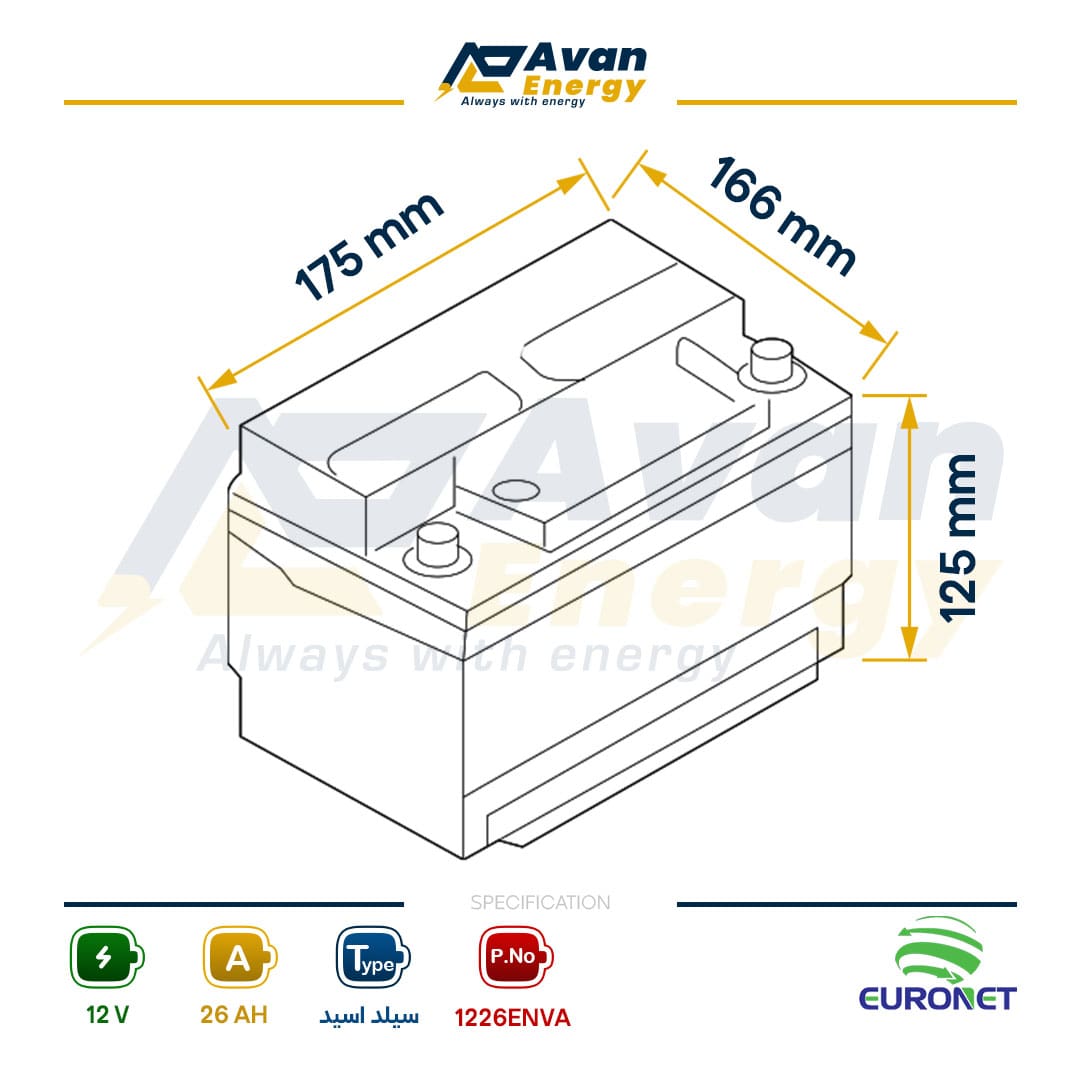 باتری 12 ولت 26 آمپرساعت یورونت – EURONET