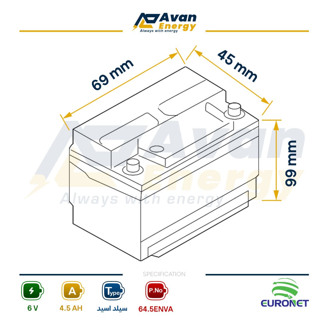 باتری 6 ولت 4.5 آمپرساعت یورونت – EURONET