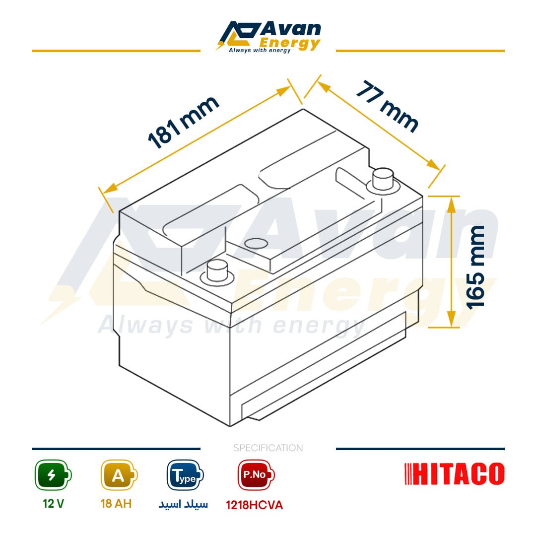 باتری 12 ولت 18 آمپر ساعت هیتاکو از نوع سیلد لید اسید باتری خشک قابل شارژ می باشد. باتری هیتاکو ساخت ایران می باشد و در موارد زیر کاربرد دارد: باتری آسانسور، باتری یو پی اس، سانترال، سولار (سیستم های خورشیدی)، باتری تجهیزات پزشکی، ماشین شارژی، موتور شارژی، سیستم های اعلام حریق، باتری مدار فرمان دربهای اتوماتیک و باتری تجهیزات مخابراتی، شبکه های کامپیوتری، ATM، دزدگیر و … .
