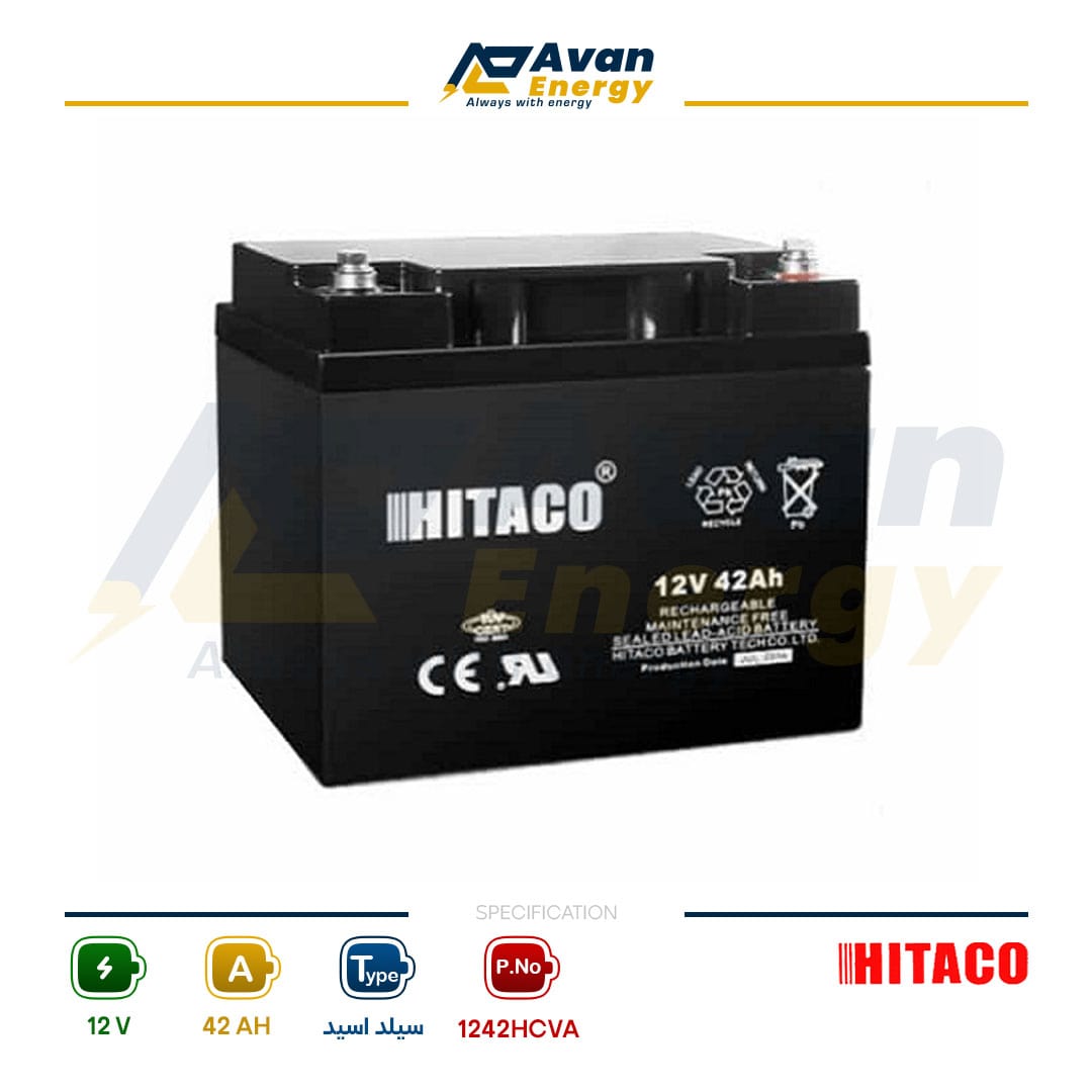 باتری 12 ولت 42 آمپر ساعت هیتاکو از نوع سیلد لید اسید باتری خشک قابل شارژ می باشد. باتری هیتاکو ساخت ایران می باشد و در موارد زیر کاربرد دارد: باتری آسانسور، باتری یو پی اس، سانترال، سولار (سیستم های خورشیدی)، باتری تجهیزات پزشکی، ماشین شارژی، موتور شارژی، سیستم های اعلام حریق، باتری مدار فرمان دربهای اتوماتیک و باتری تجهیزات مخابراتی، شبکه های کامپیوتری، ATM، دزدگیر و … .