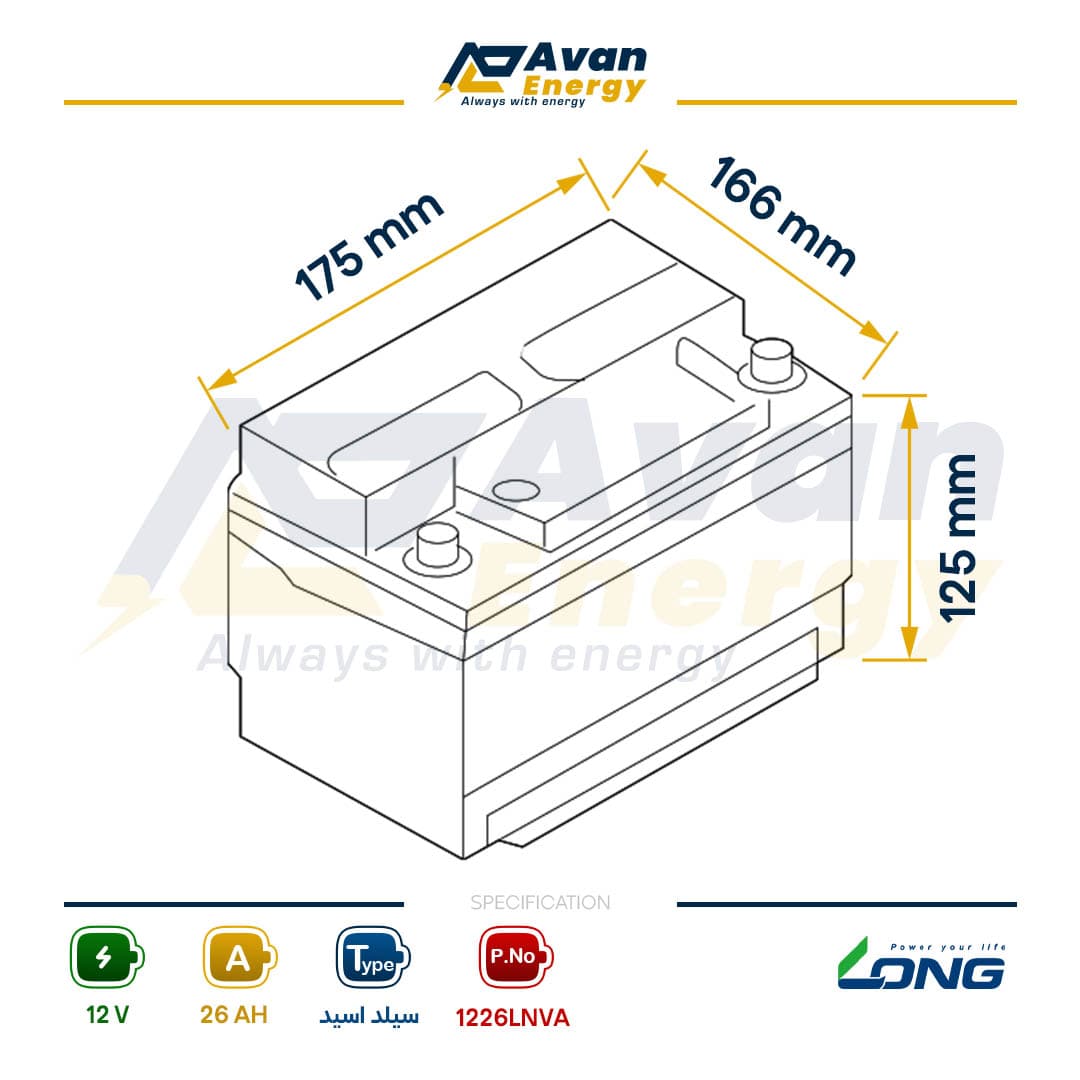 باتری 12 ولت 26 آمپرساعت لانگ – LONG