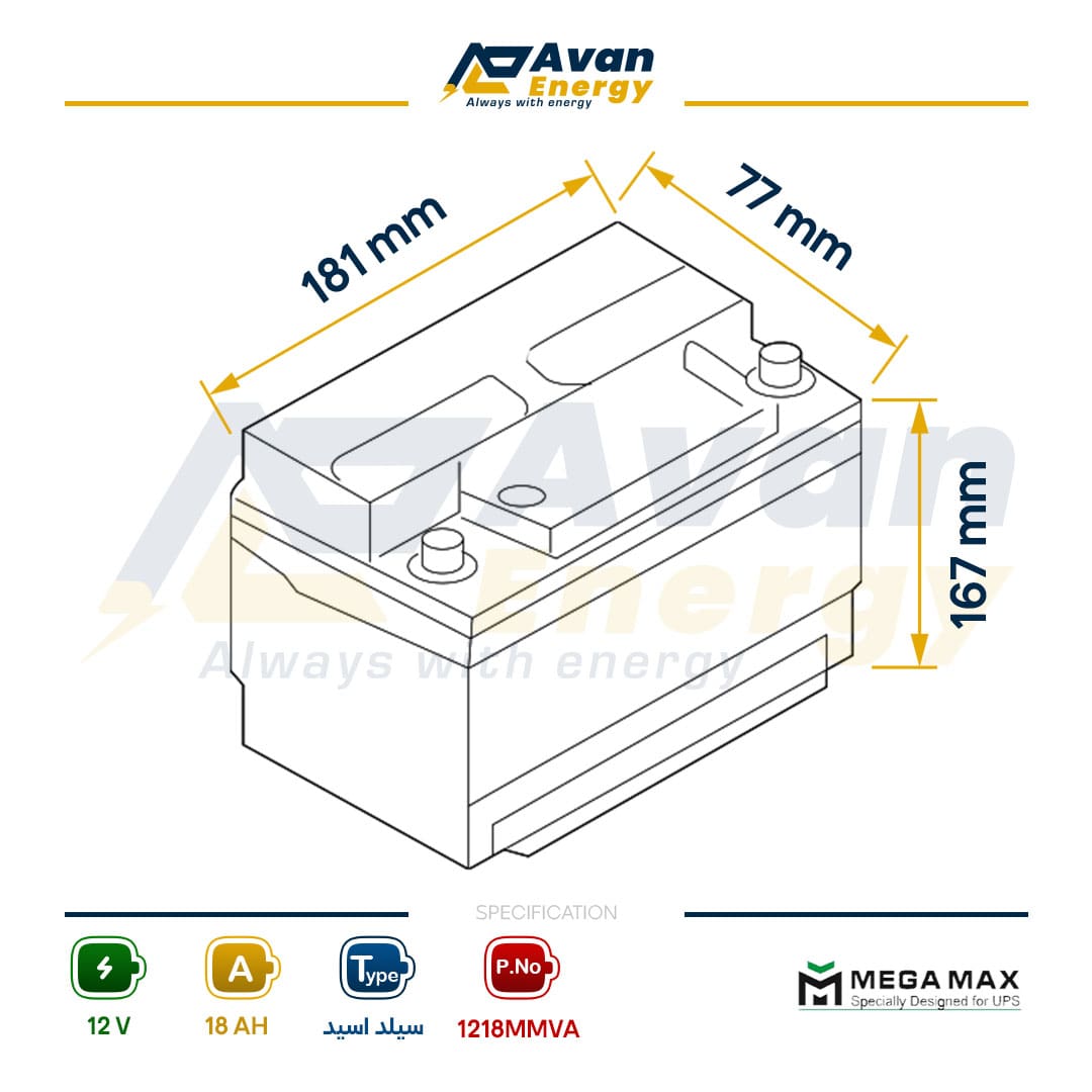 باتری 12 ولت 18 آمپرساعت مگامکس – MEGAMAX